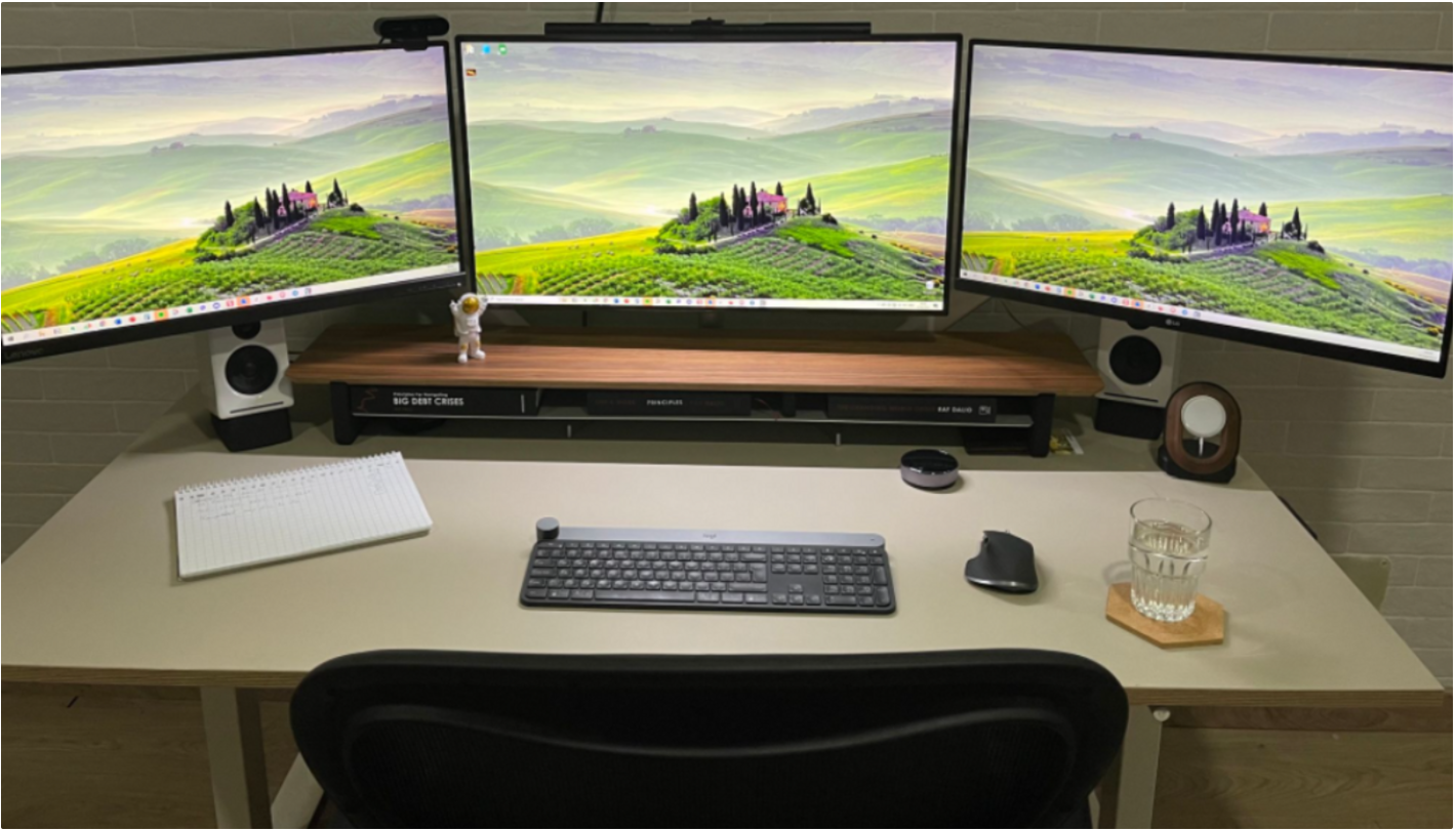 I am spending these days between 10 to 12 hours per day at my desk studying. I realized I made an excellent investment in buying a standing desk, good quality screens (1 - 32’ and 2-27’ is my setup as of now), good quality Herman Miller chair...etc. Minor improvements to your desk will pay off as it will keep you productive and in good working mood. Here is how my desk looks now: